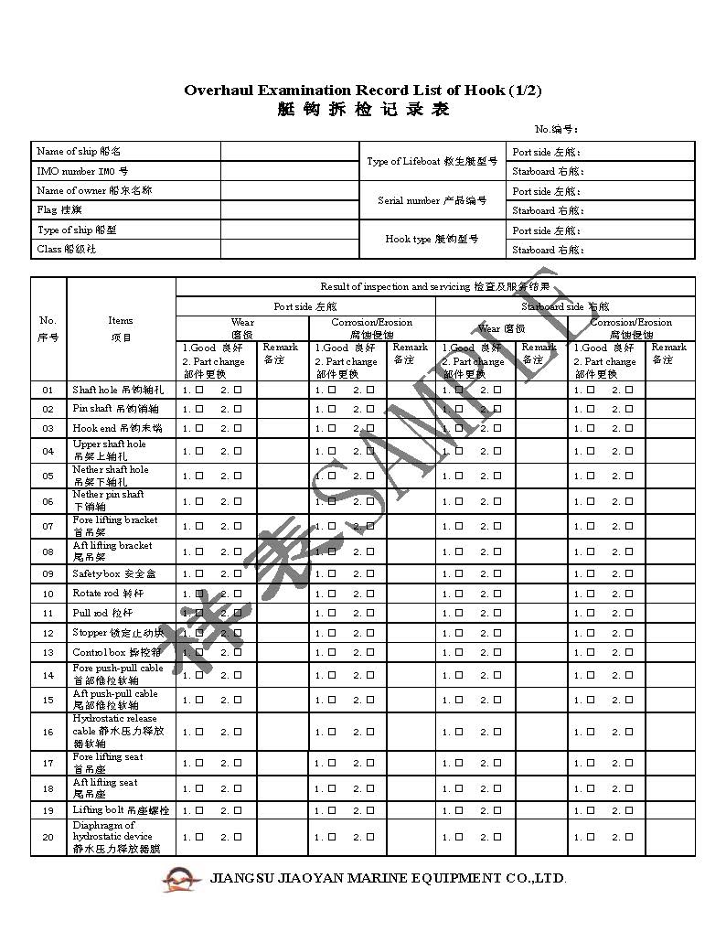 附录1:CCS船级社对现有艇钩系统的评估报告 示例1