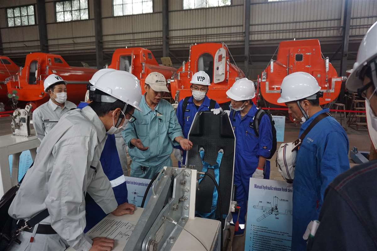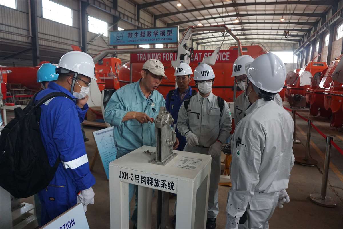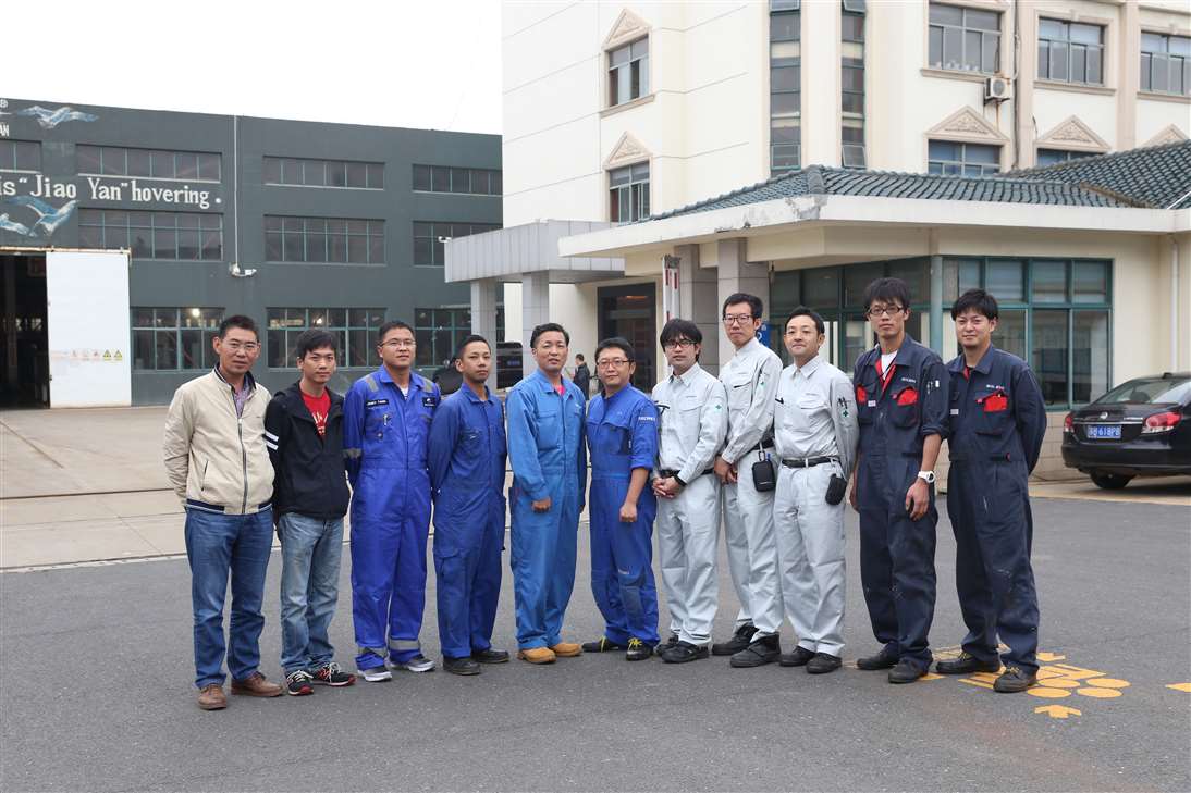 来自MANSEI INC/MARINAIR LIFERAFT CO., LTD/NISHI-NIPPON FUJIKURA CO., LTD/MOL ENGINEERING CO., LTD /SHIPGUARD INC共11名船舶服务精英人员来到天空集团官网(中国)官方网站,对厂家设备的新设计,新产品进行深层次的学习和服务训练,成为佼燕救生设备的优秀服务商,为佼燕的客户提供更优质,更专业,更及时的服务.