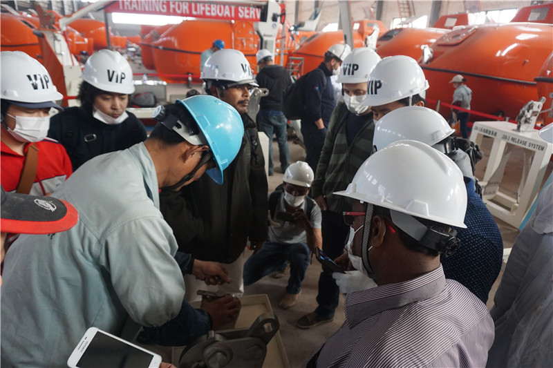 船舶服务精英人员来到天空集团官网(中国)官方网站,对厂家设备的新设计,新产品进行深层次的学习和服务训练,成为佼燕救生设备的优秀服务商,为佼燕的客户提供更优质,更专业,更及时的服务.